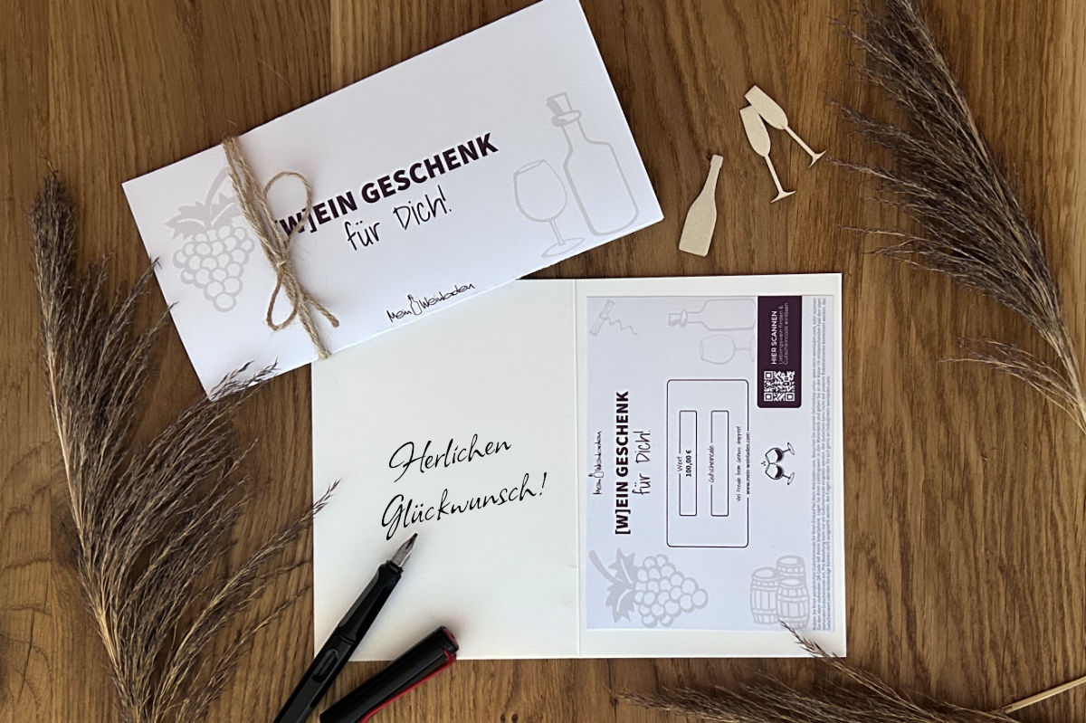 Entdecken Sie die flexiblen Wein Gutscheine von Mein-Weinladen.com. Mit unseren Wein Gutscheinen schenken Sie Genuss, Zeit und besondere Weinmomente – ganz unkompliziert und dennoch persönlich. Ob als Last-Minute-Geschenk, stilvoll ausgedruckt oder als liebevoller Beileger zur Grußkarte: Ein Weingutschein passt zu jedem Anlass.